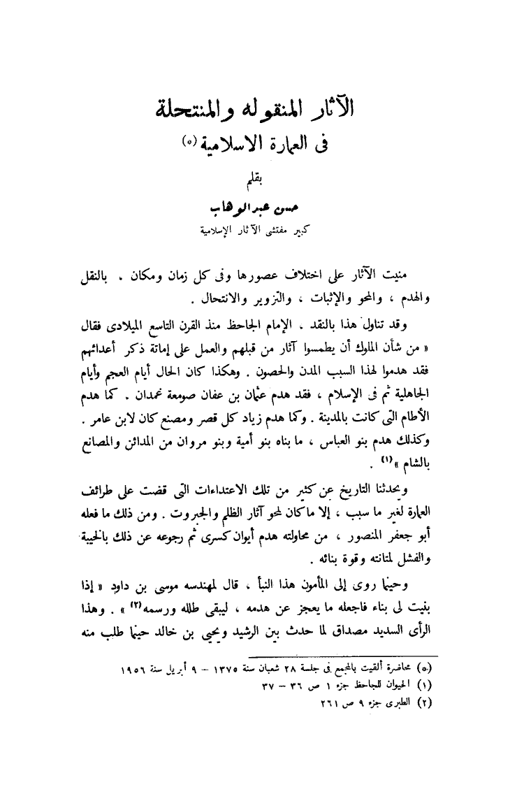 الآثار المنقولة والمنتحلة في العمارة الإسلامية