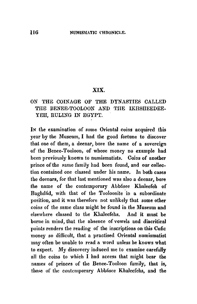 On the Coinage of the Dynasties called the Benee -Tooloon and the Ikhsheedeeyeh Ruling in Egypt