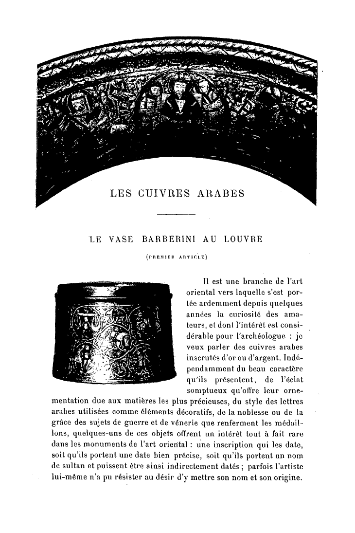 Les Cuivres arabes : le vase Barberini au Louvre – First Article