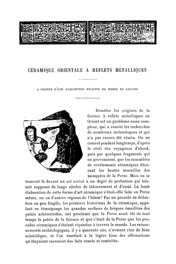 Céramique orientale à reflets métalliques à propos d'une acquisition récente au Musée du Louvre