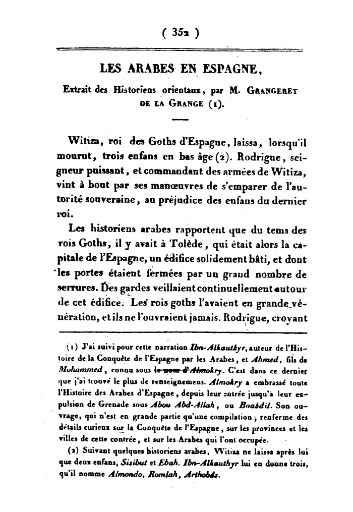 Les Arabes en Espagne. Extrait des Historiens Orientaux
