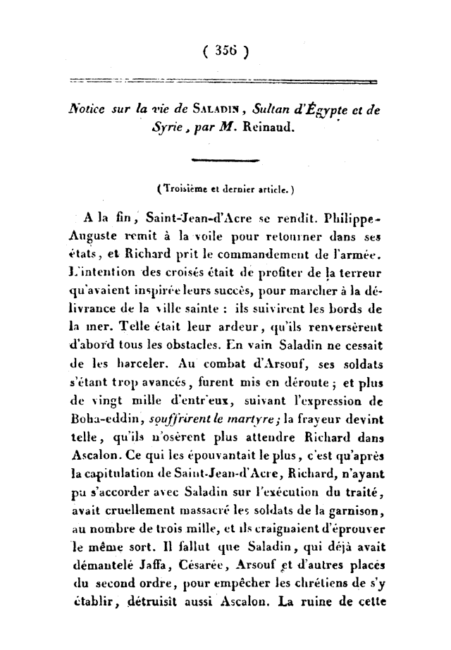 Notice sur la vie de Saladin, sultan d'Égypte et de Syrie –Third Article