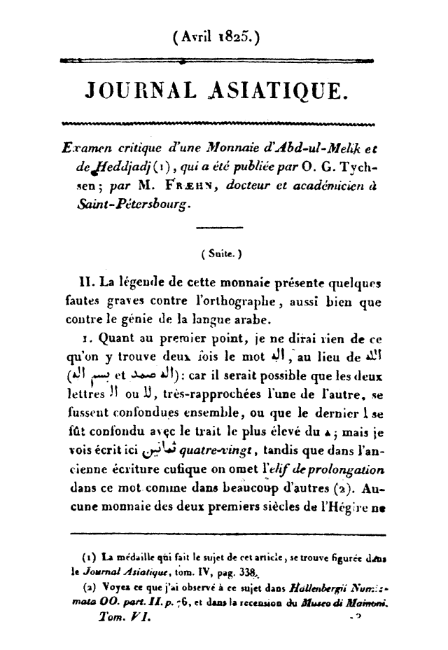 Examen critique d'une Monnaie d'Abd-ul-Melik et de Heddjadj , qui a été publiée par O.G. Tychsen (suite)