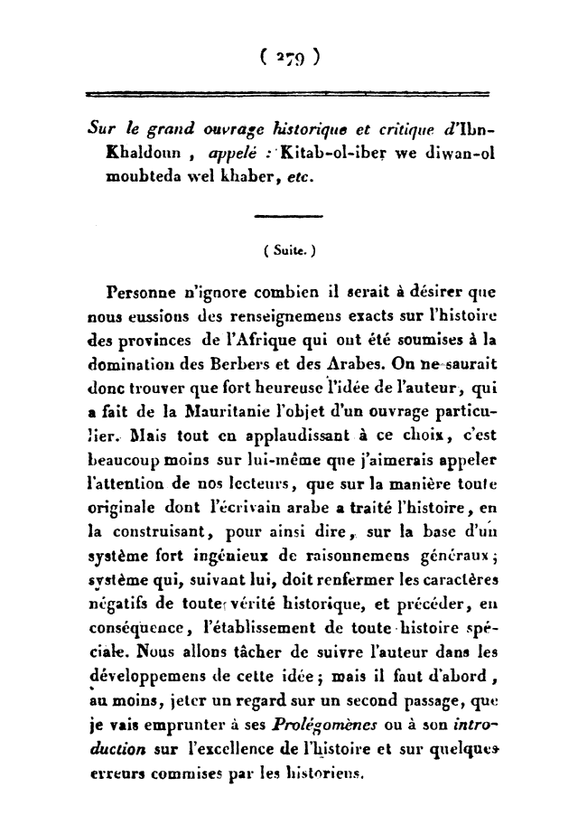 Sur le grand ouvrage historique et critique d'Ibn Khaldoun appelé 'kitaab-ol-iber we diwan-ol-moubteda wel-khabar, etc.(suite)