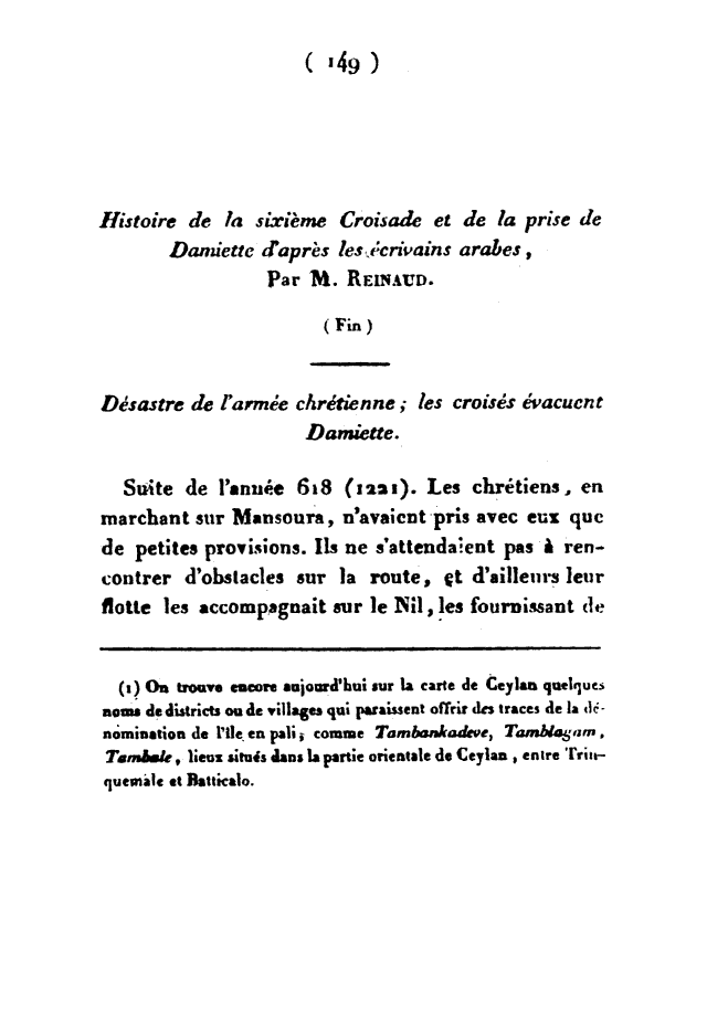 Histoire de la sixième croisade et de la prise de Damiette, d'après les écrivains arabes. ( Fin )