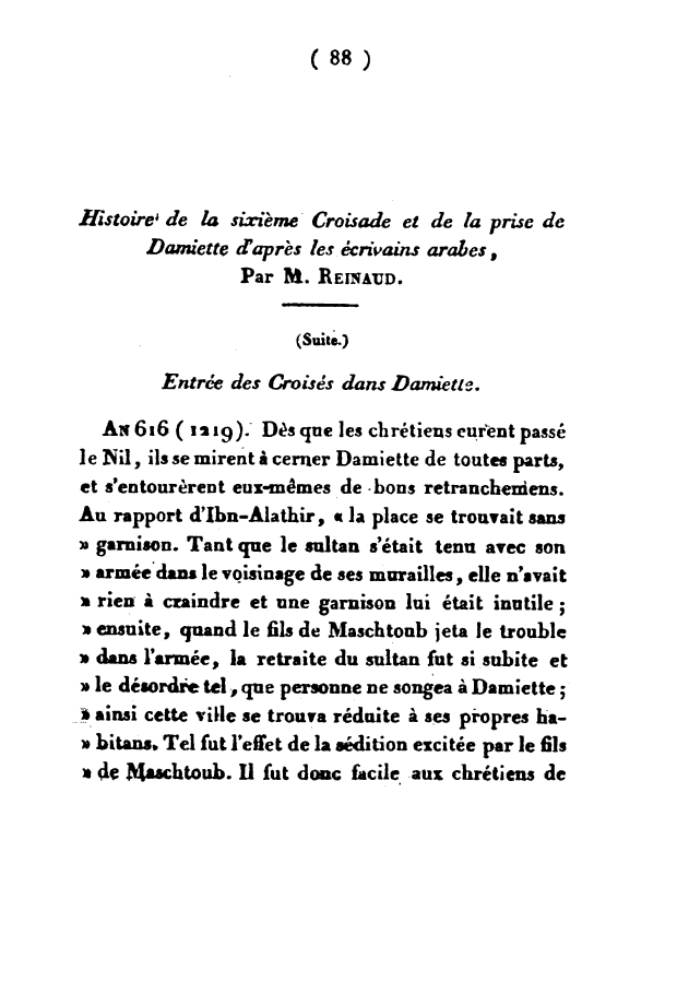 Histoire de la sixième croisade et de la prise de Damiette, d'après les écrivains arabes. (suite)
