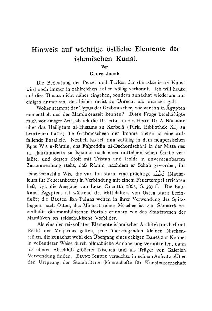 Hinweis auf wichtige östliche Elemente der islamischen Kunst