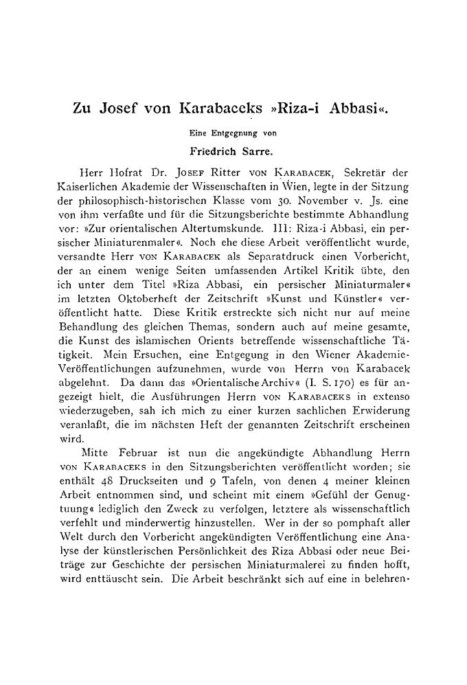 Zu Josef von Karabaceks "Riza-i Abbasi"