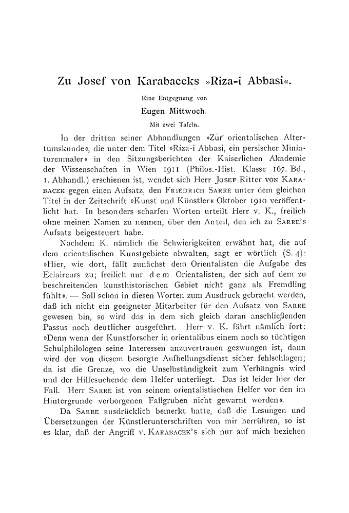Zu Josef von Karabaceks "Riza-i Abbasi"