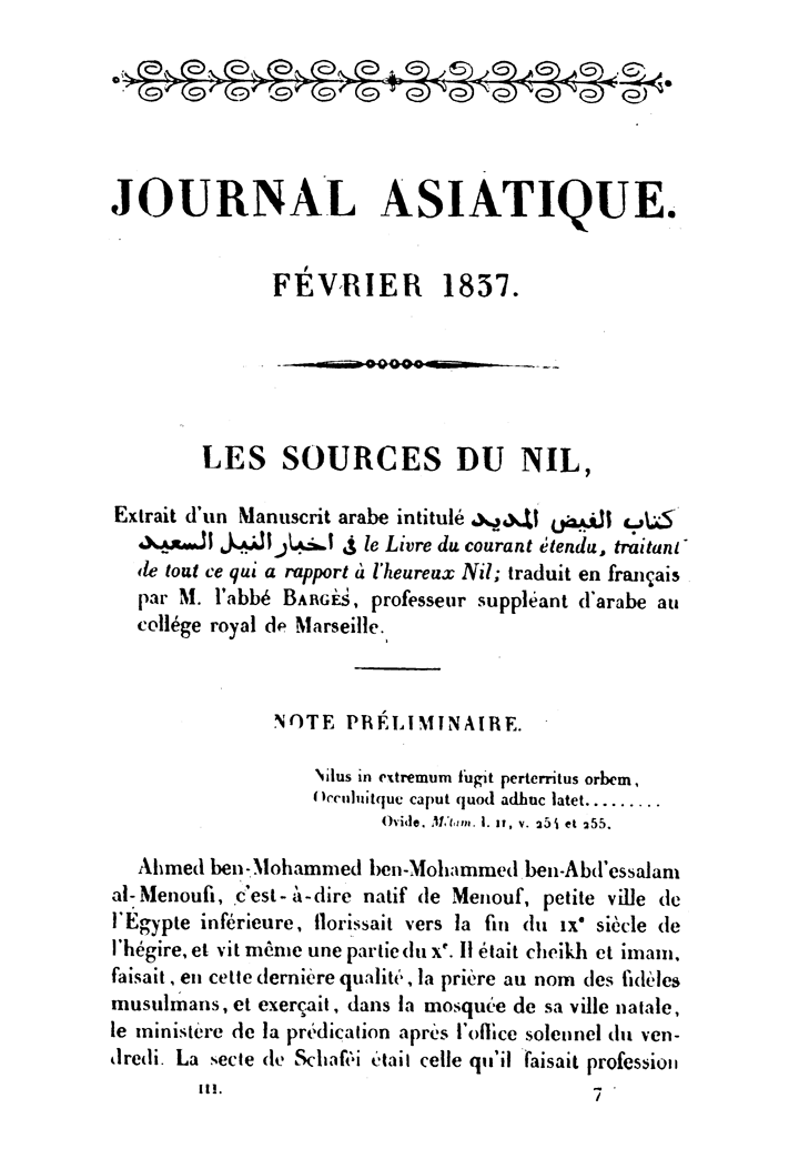 Les sources du Nil: Extrait d'un manuscrit arabe: Le livre du courant étendu, traitant de tout ce qui a rapport à l'heureux Nil