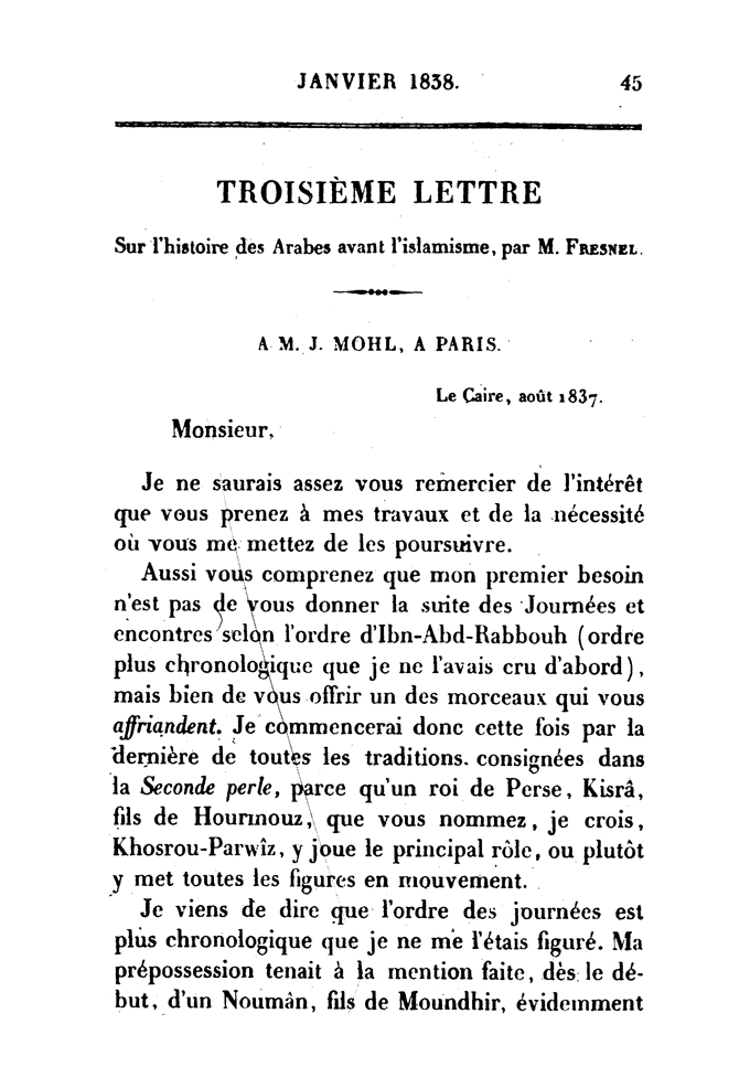 Troisième lettre sur l'histoire des arabes dans l'islamisme