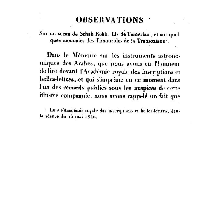Observation sur un sceau de Schah Rokh, fils de Tamerlan, et sur quelques monnaies des Timourides de la Transoxiane