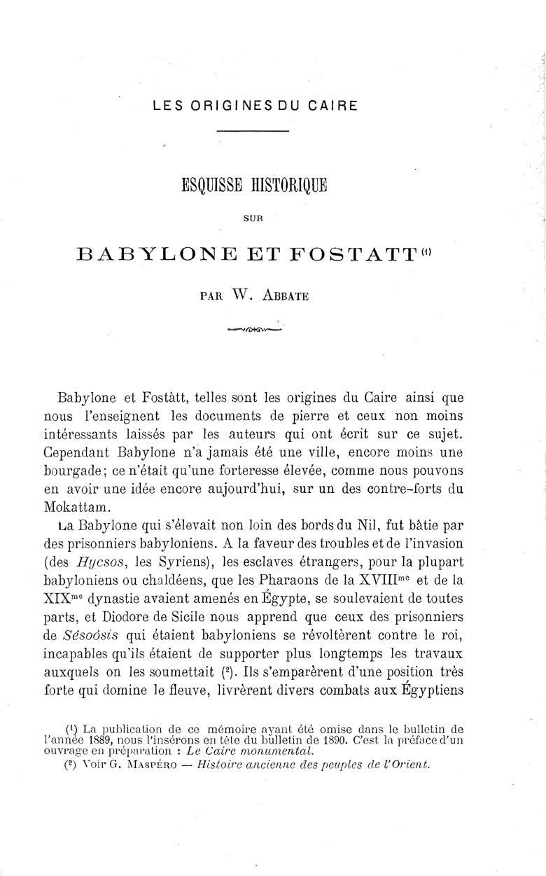 Les origines du Caire: esquisse historique sur Babylone et Fostatt