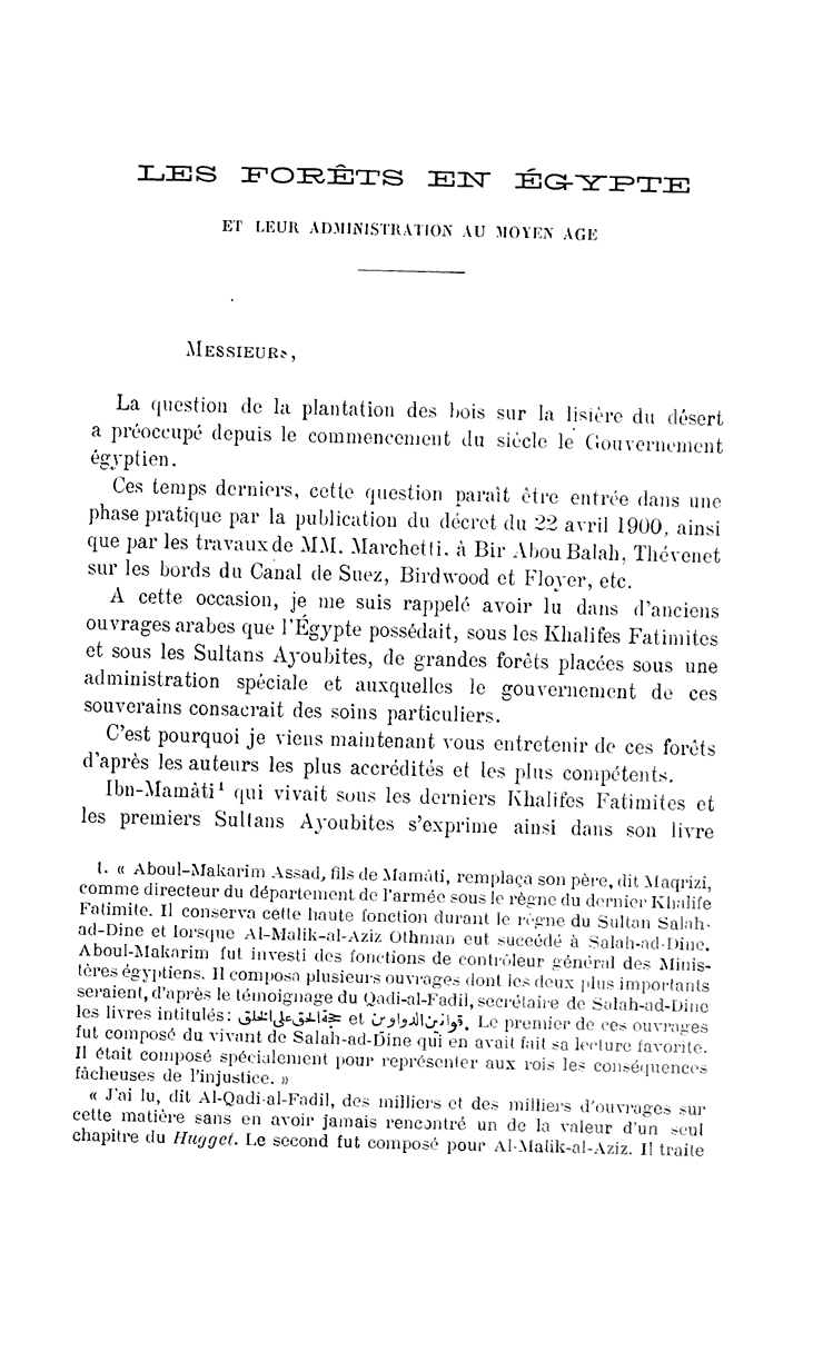 Les Forêts en Egypte et leur administration au Moyen Age