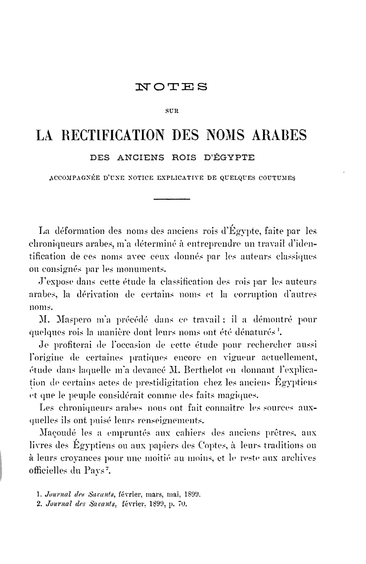Notes sur la rectification des noms arabes des anciens rois d'Egypte
