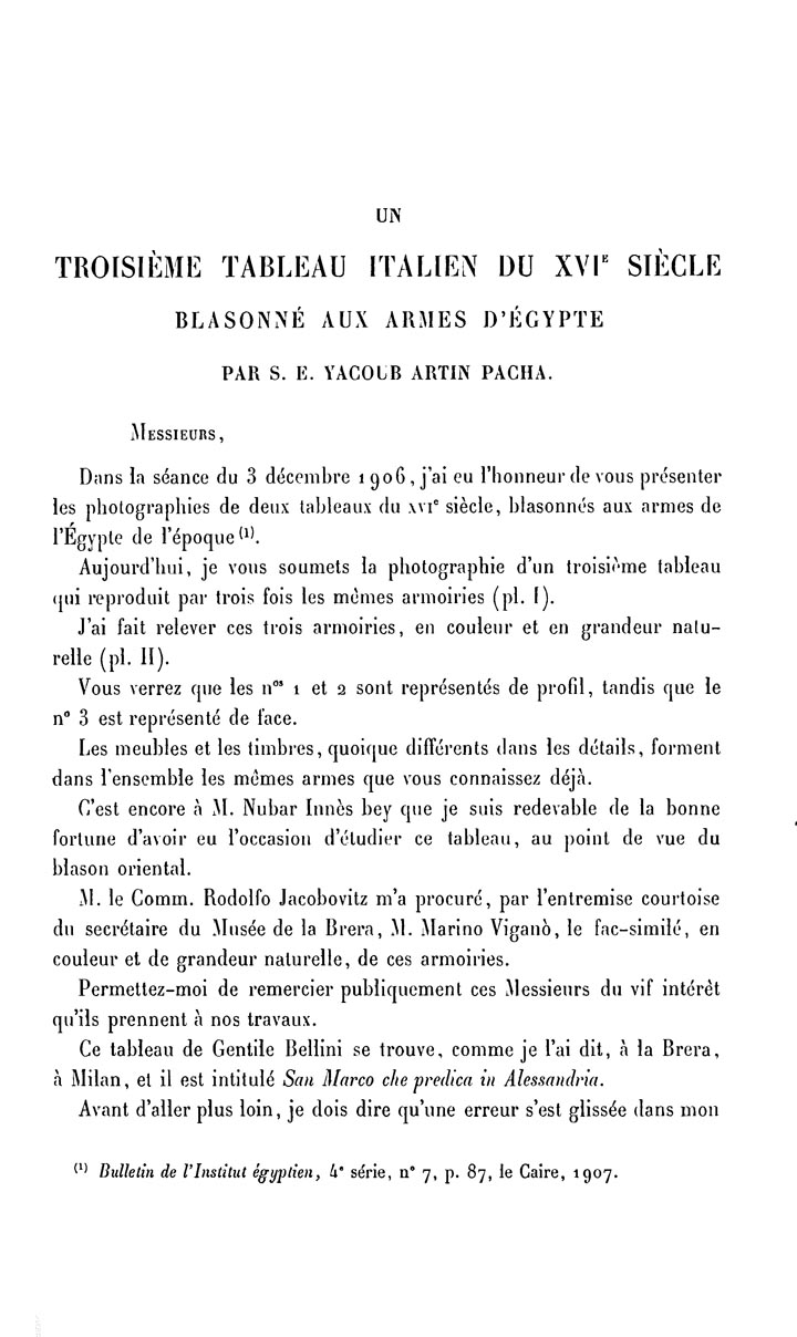 Un troisieme tableau italien du XVI" siec1e blasonne aux armes d'Egypte