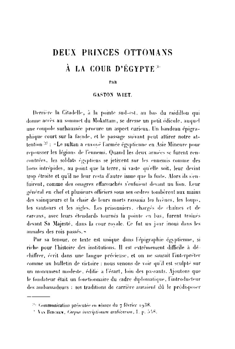 Deux Princes Ottomans a` la Cour d'E ́gypte