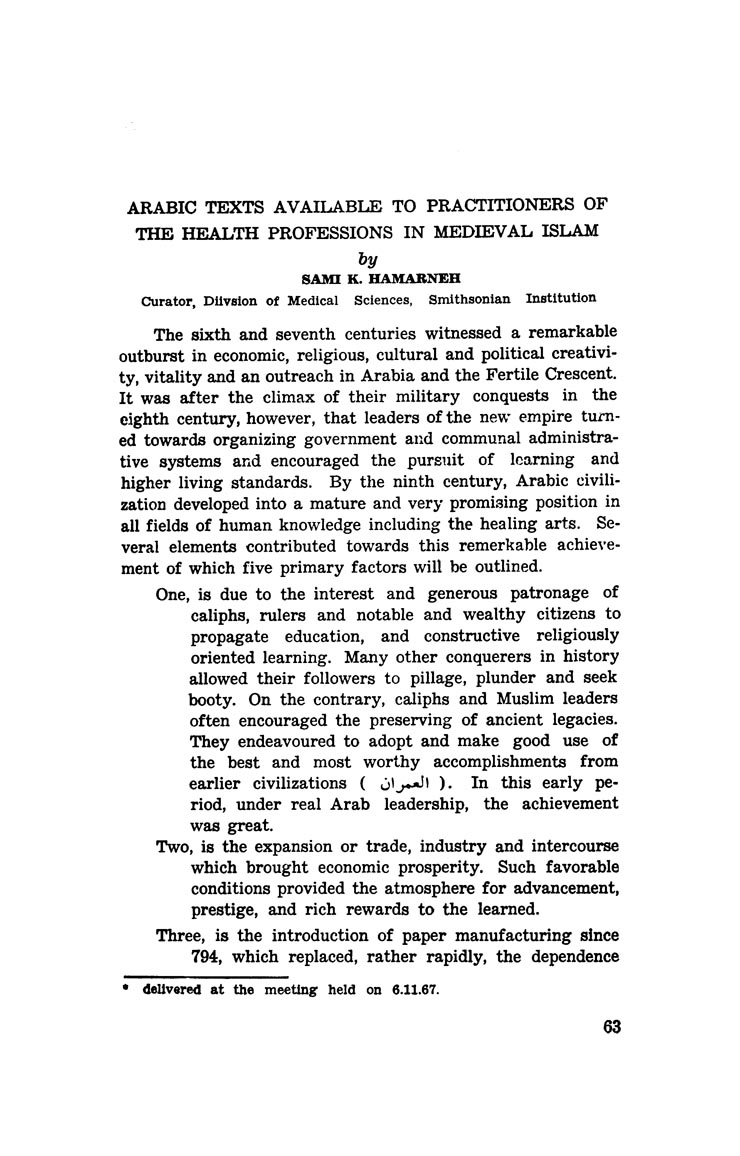 Arabic texts available to practitioners of the health professions in medieval Islam