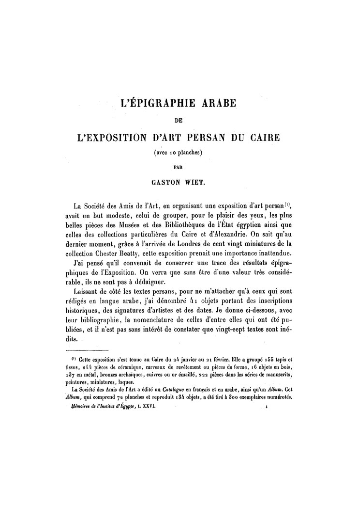 L'Epigraphe Arabe de l'Exposition d'Art Persan, Cairo