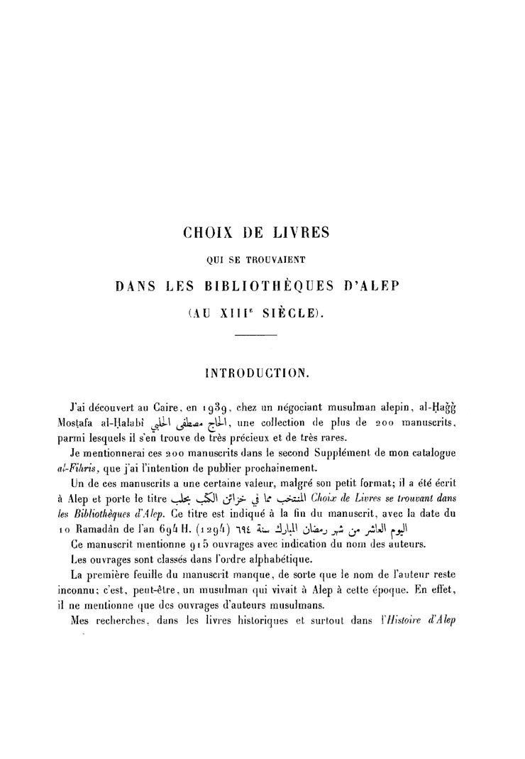 Choix de livres qui se trouvaient dans les bibliothèques d'Alep (au XIIIe siècle)