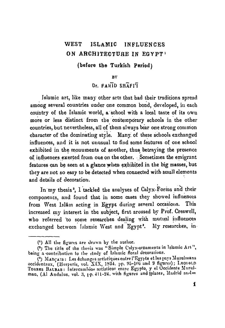 West Islamic Influences on Architecture in Egypt (before the Turkish Period)