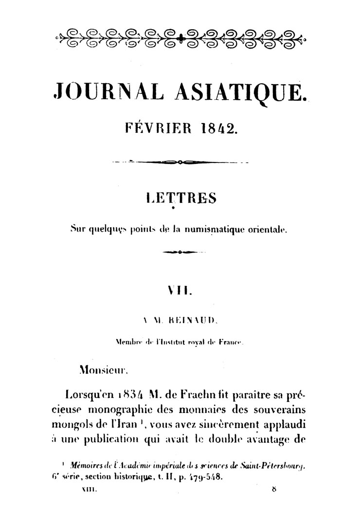 Lettres sur quelques points de la numismatique arabe à M. Reinaud, membre de l'Institut de France.(VII)
