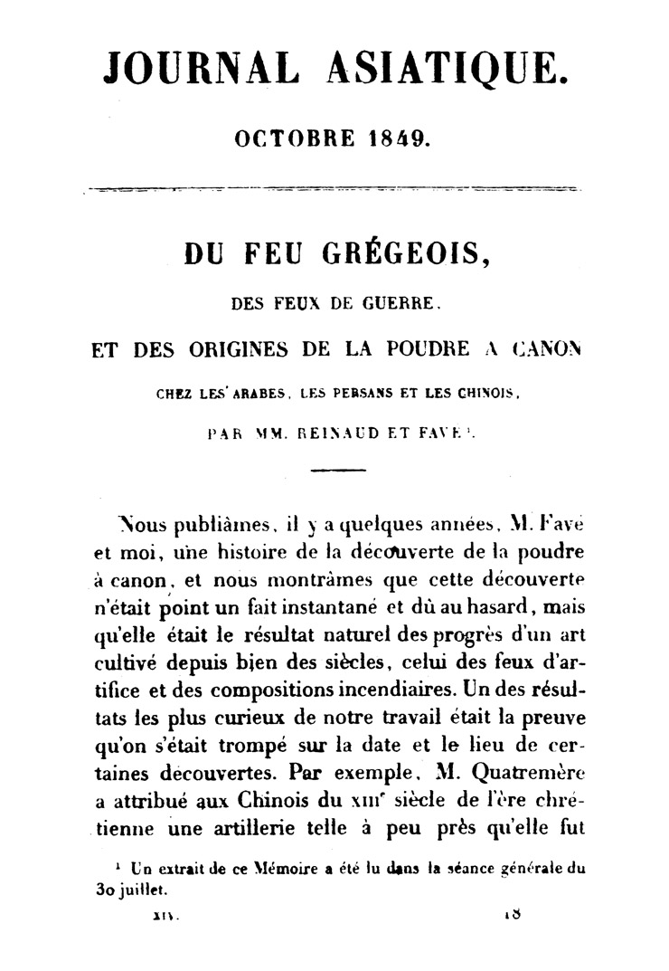 Du feu grégeois, des feux de guerre et des origines de la poudre à canon chez les Arabes, les Persans et les Chinois