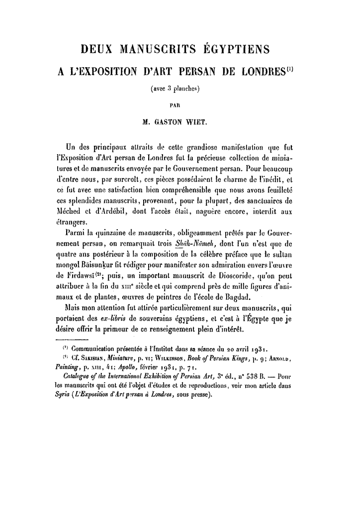 Deux manuscrits egyptiens a l'exposition d'art persan de Londres