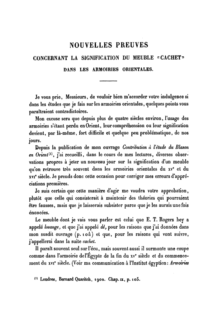 Nouvelles preuves concernant la signification du meuble cachet dans les armoiries orientales